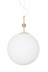Astrid er en klassisk taklampe med matt hvitt glass og børstet messingfarget metall. Lampen er i et stilig, men luksuriøst design takket være fine detaljer i messing. Lampen er like fin som flere stykker på rad over kjøkkenbordet. En perfekt interiørdetalj som gir varme til rommet med sitt behagelige lys. Finnes i forskjellige størrelser.