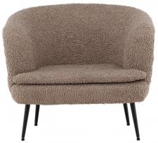 Hev stilen til hjemmet ditt med denne elegante lenestolen som vil imponere! Gøtene er en drømmelenestol, i et for tiden populært design. Laget i mykt teddystoff i en mørk beige tone, som gir rommet et behagelig og varmt inntrykk. Bena er elegante, smale og litt utvidede i sort stål. Lenestolen er den perfekte kombinasjonen av stil og komfort. Plasser den ved siden av sofagruppen eller alene i et lesekrok, her får du en ny favoritt til hjemmet ditt!