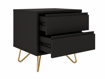 Sengbordet Elle fra Reforma er den perfekte kombinasjonen av moderne design og praktisk funksjonalitet. Dette trendy sengbordet tilfører en elegant touch til soverommet samtidig som det tilbyr smart oppbevaring med sine to romslige skuffer. Laget av høykvalitetsmaterialer som tre og metall, noe som sikrer både holdbarhet og stil.
