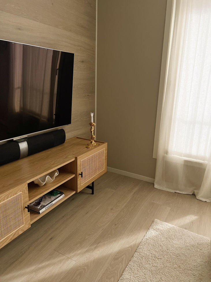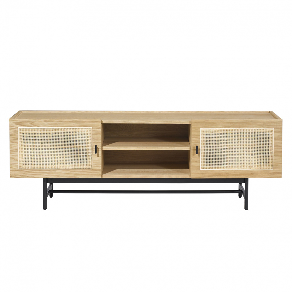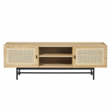 De elegante dørene i naturlig rotting gir TV-benken et unikt og moderne preg, samtidig som de tilfører en varm og innbydende følelse til rommet. Takket være sitt tidløse design og nøytrale farger kan denne TV-benken enkelt kombineres med andre møbler og interiørstiler.