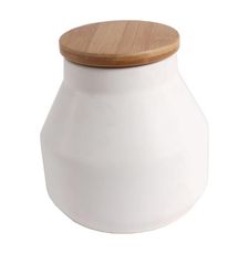 Fin förvaringsburk Dreja i matt vit keramik. Trälock med packning. Mått: Höjd 13,5 cm diameter 13cm.