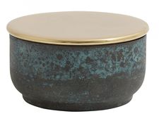 Stilsäker förvaring när den är som bäst från det danska varumärket Nordal. Den antika känslan av patina åt det gröna hållet i kombination med ett mässinglock ger en lyxig vintagekänsla.