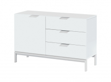 Materiale: 18 mm hvitmalt MDF-plate. Håndtak og ben i aluminium.