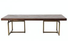 Eksklusivt salongbord fra designmerket Zuiver (tre og messing). Annen informasjon: 4 cm bordplate (MDF med finer i akasietre), firkantrør av 20 mm karbonstål (lakkert antikk messing).