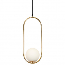Taklampe i stilig og stilig design. Lampen blir ekstra stilig med messingrammen i kombinasjon med den runde lyskilden i opalt glass. Den rette lampen kan hjelpe hele rommet med å få akkurat den følelsen du leter etter. Passer perfekt i stuen, soverommet eller annet sted i hjemmet og blir en fin og unik detalj i interiøret. Merk at lyspæren ikke er lagt til og må kjøpes separat.
